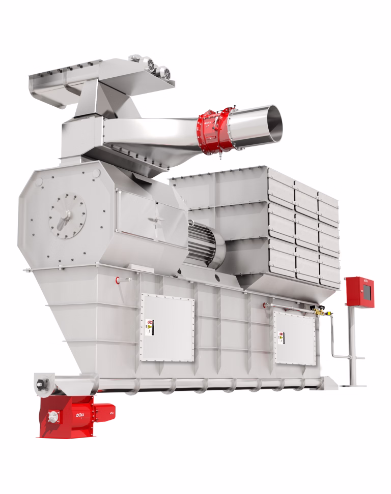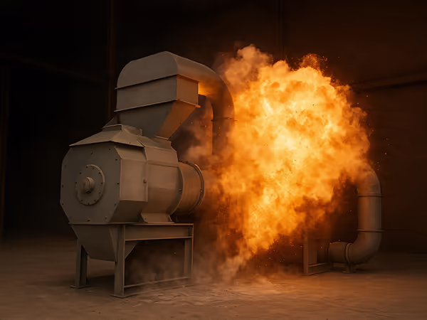 During the grinding process, the hammers rotate at high speed and pulverize the product, generating a high concentration of suspended combustible dust. This environment, added to possible hot spots due to friction, mechanical failures, or the entry of foreign bodies (such as stones or metal parts), can cause a source of ignition.